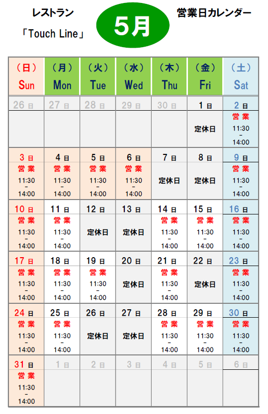 【5月 休業日】