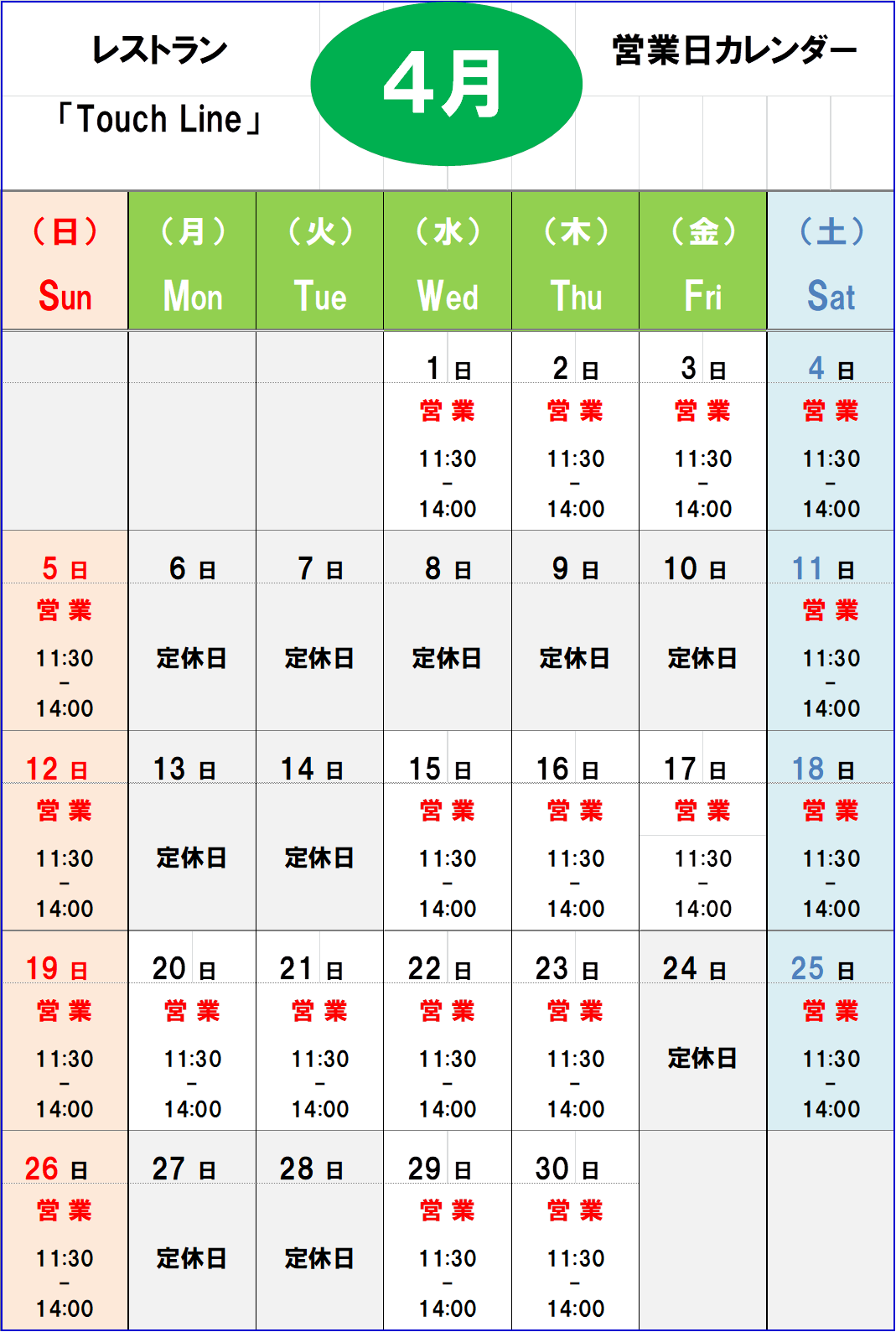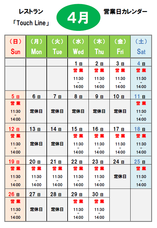 【4月 休業日】